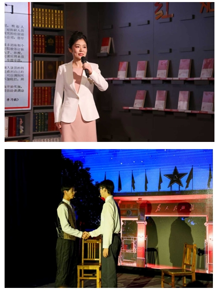 旅游管理系黨支部副書記王娟以《思想浸潤心靈  傳文脈繼往開來——習(xí)近平文化思想在浙江的溯源與實(shí)踐》為題,分享了《習(xí)近平在浙江》的讀書心得,情景劇《遺址邊的吶喊》,將思想性、藝術(shù)性及感染力高度結(jié)合,讓觀眾在情感共鳴中感受習(xí)近平文化思想的偉力。